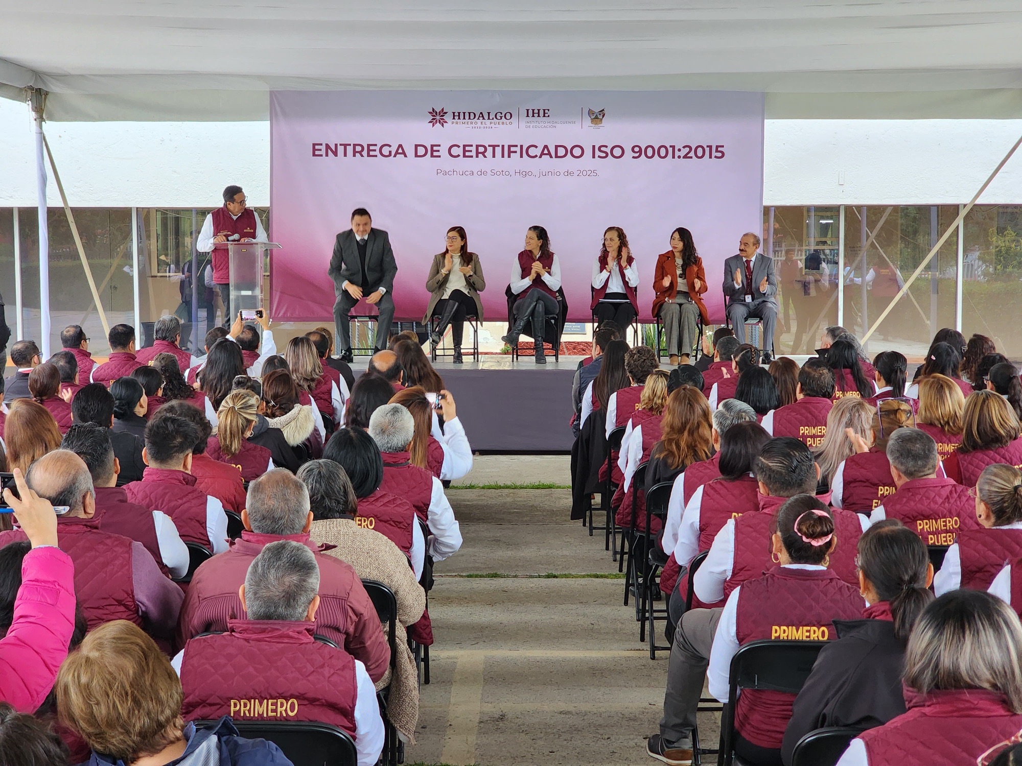 El Instituto Hidalguense de Educación (IHE) recibió por parte del Instituto Mexicano de Estandarización y Evaluación de la Conformidad (IMEEC) la séptima certificación ISO 9001:2015, por gestión del pago por servicios personales y gestión de recursos materiales y servicios hasta la entrega al usuario final.