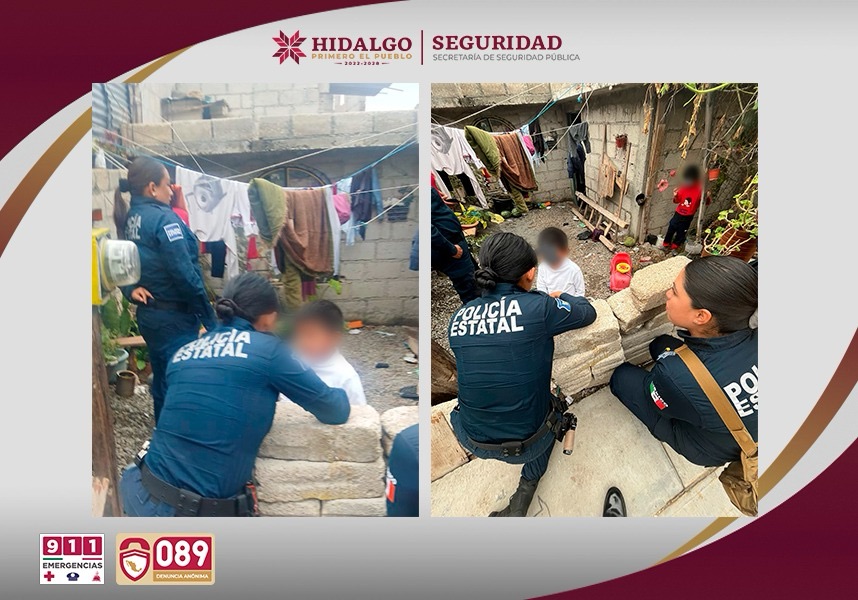 En un operativo de la Policía Violeta, dos menores de 5 y 7 años fueron rescatados en la colonia Ramos Arizpe, en Pachuca de Soto, tras ser víctimas de violencia física y abandono por parte de sus familiares.