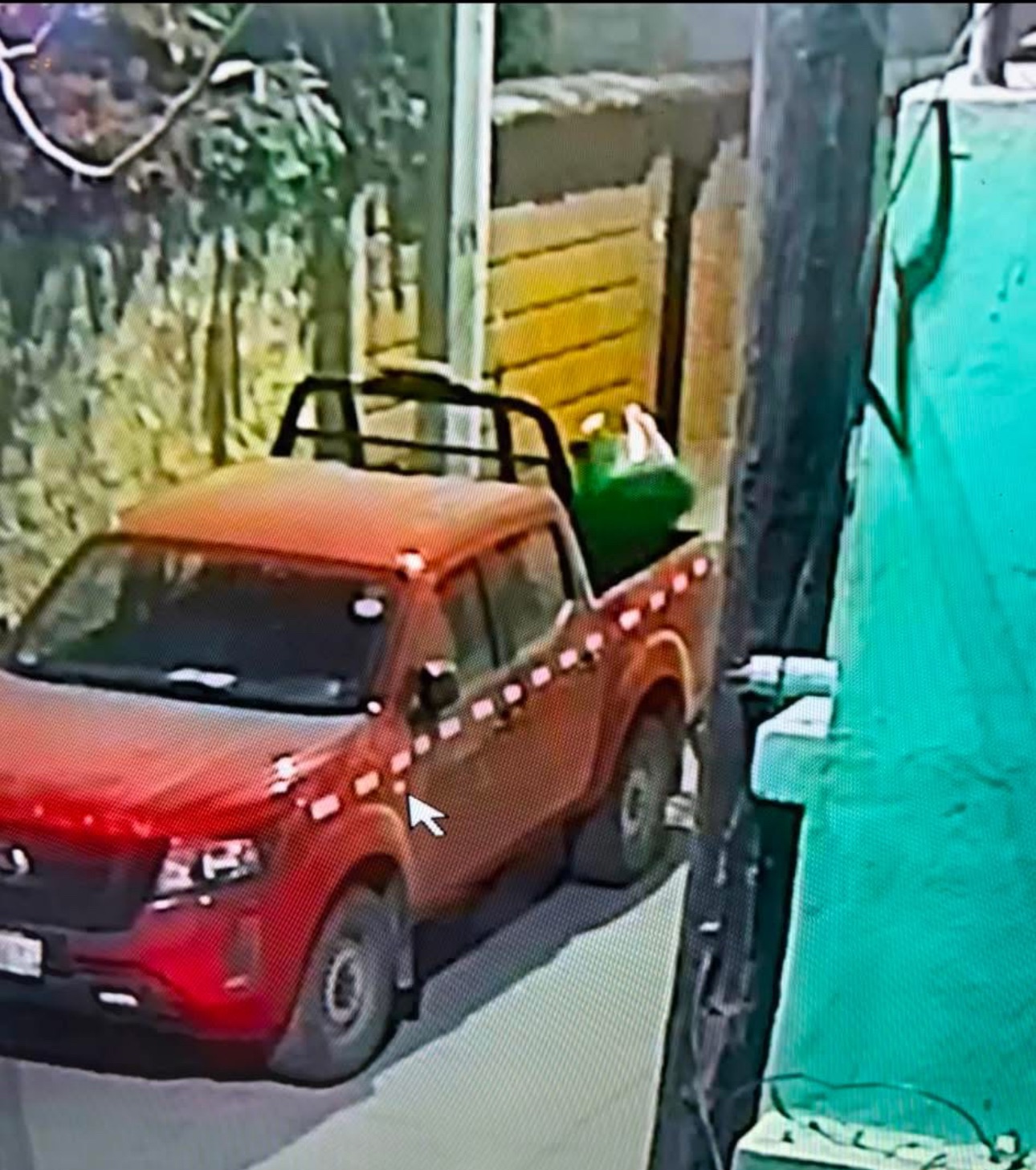 Una cámara de seguridad captó el momento en que un hombre, a bordo de una camioneta, sustrajo las croquetas.