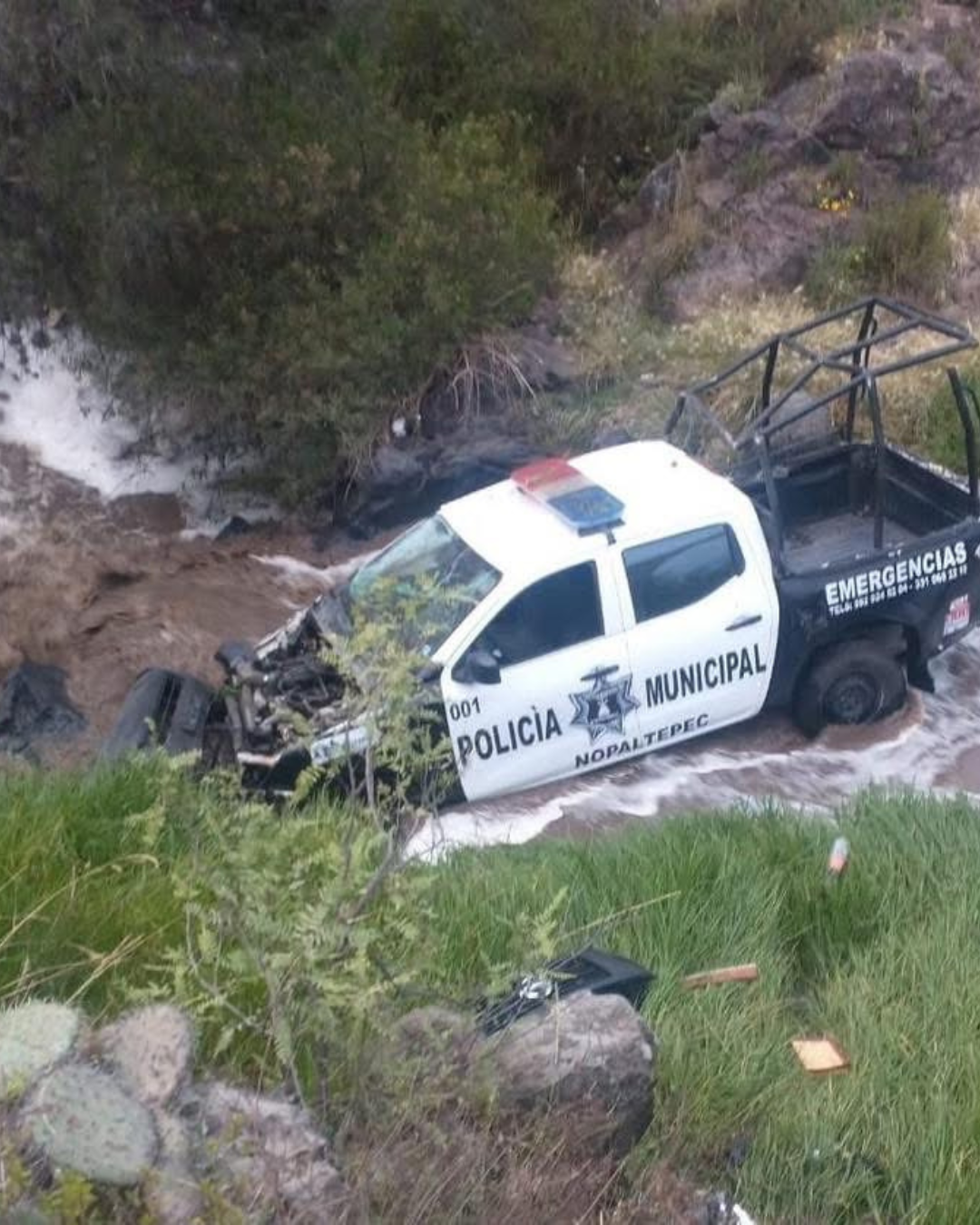 Nopaltepec, Estado de México.– Una patrulla de la policía municipal de Nopaltepec se accidentó este lunes en las inmediaciones del Acueducto del Padre Tembleque, a la altura del límite con Hidalgo.