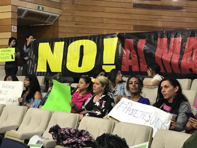 Integrantes de diversas agrupaciones sociales y animalistas se manifestaron en la sede del Congreso local para impedir que se votara la iniciativa que busca declarar patrimonio cultural e inmaterial a las peleas de gallos.