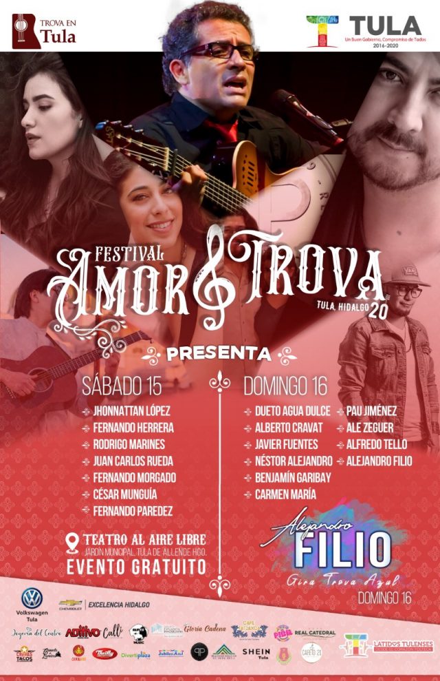 Inicio De todo #Tula De la voz y el corazón, te presentamos el cartel... #Tula De la voz y el corazón, te presentamos el cartel oficial del 4o. Festival #AmorYTrova. 15 y 16 de febrero en el #TeatroAlAireLibre en el centro de Tula. #EventoGratuito 10 de febrero de 2020 FacebookTwitterPinterestWhatsApp
