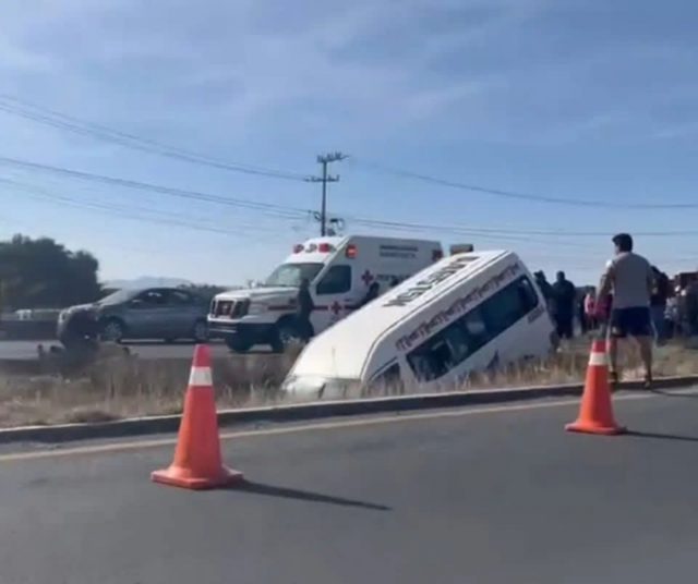 Pachuca.- Un accidente vial dejó como saldo cinco personas lesionadas luego de que una Urvan del transporte público se salió del camino en la carretera Pachuca-Sahagún, a la altura del fraccionamiento Haciendas Margarita.