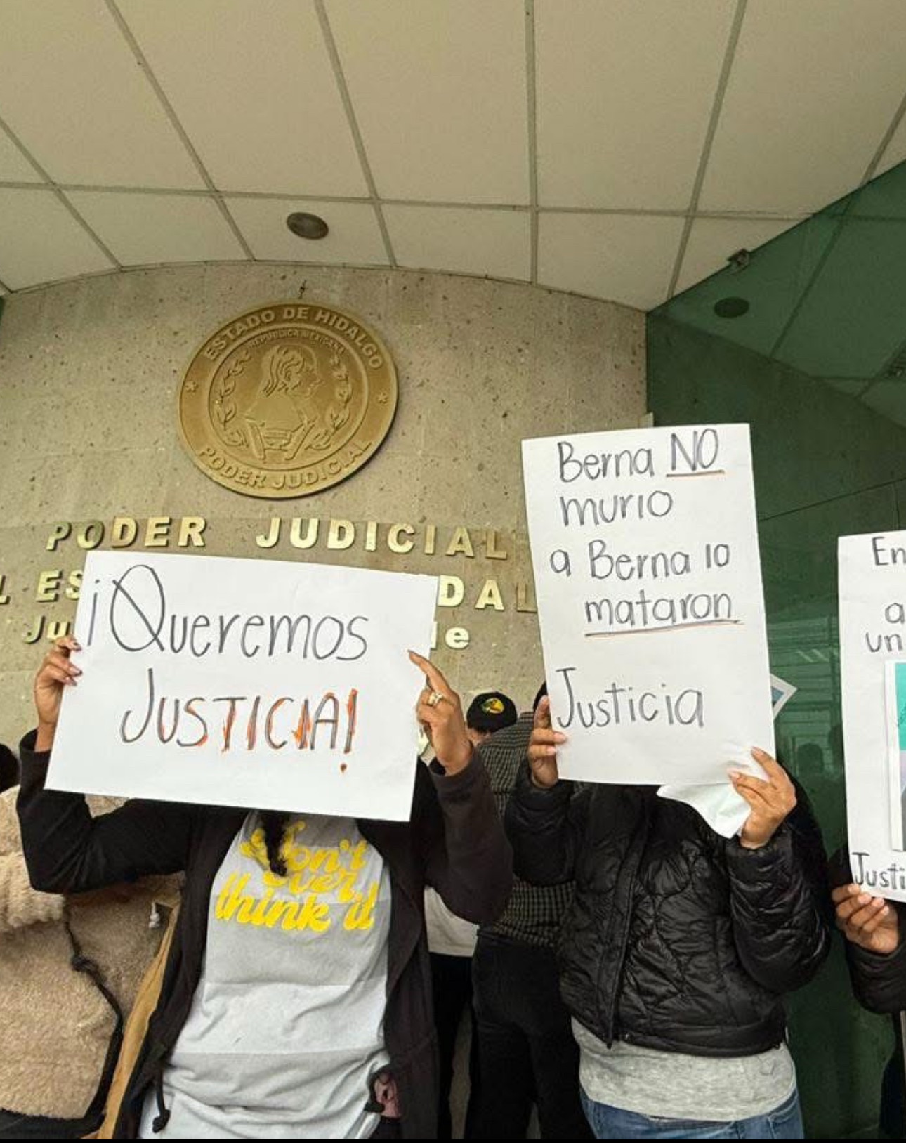 Familiares y amigos del agente fallecido, se manifestaron a las afueras del Poder Judicial estatal con pancartas y consignas para exigir que el caso sea reclasificado como homicidio doloso. Entre los mensajes se leían frases como: “¡Queremos justicia!” y “Berna no murió, a Berna lo mataron”.