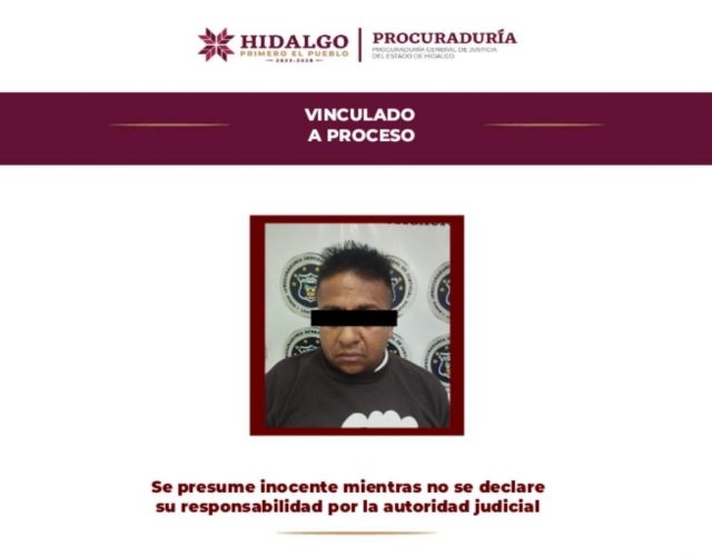 La Procuraduría General de Justicia del Estado de Hidalgo (PGJEH) obtuvo la vinculación a proceso de un hombre identificado con las iniciales M. A. M. G., investigado por los delitos de feminicidio, homicidio doloso y homicidio doloso en grado de tentativa.